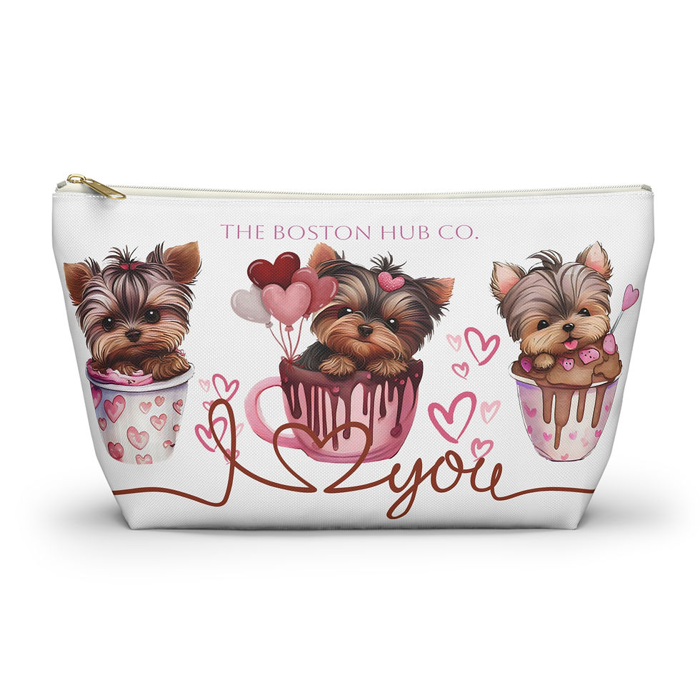 Accessory Pouch | 2 Sizes | White | Yorkies Cup Cakes I Love You